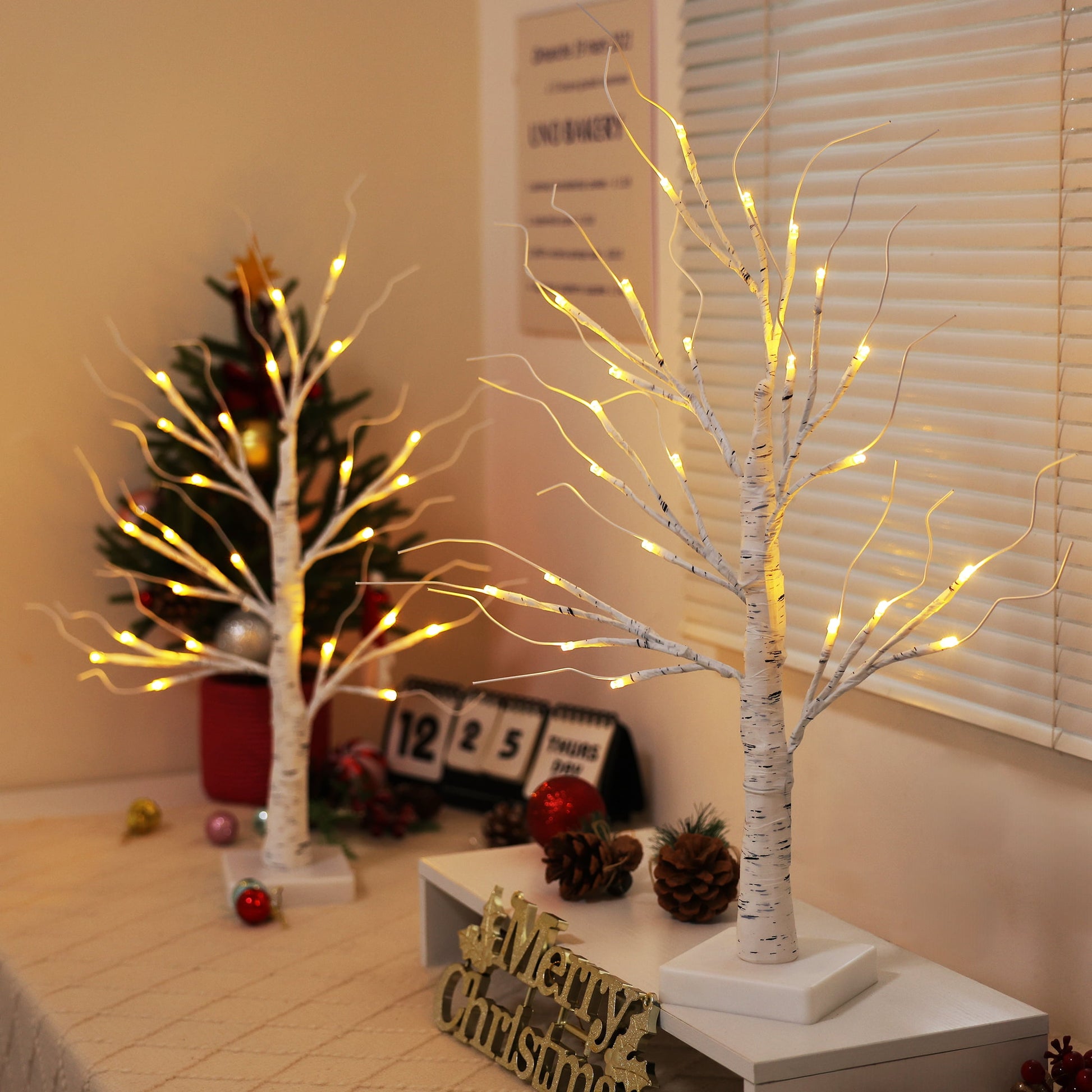 Elevate your ??Christmas decorations?? with these enchanting 2FT birch trees, featuring authentic bark-textured trunks and 24 warm white LEDs. Bendable branches securely hold ??Christmas ornaments??, baubles, or seasonal accents like hearts and eggs. Powered by included USB cable or batteries (3¡ÁAA, not included), these versatile trees with upgraded circuit protection work as magical ??Christmas centerpieces?? while transitioning effortlessly to Valentine's Day, Easter, and year-round d¨¦cor.