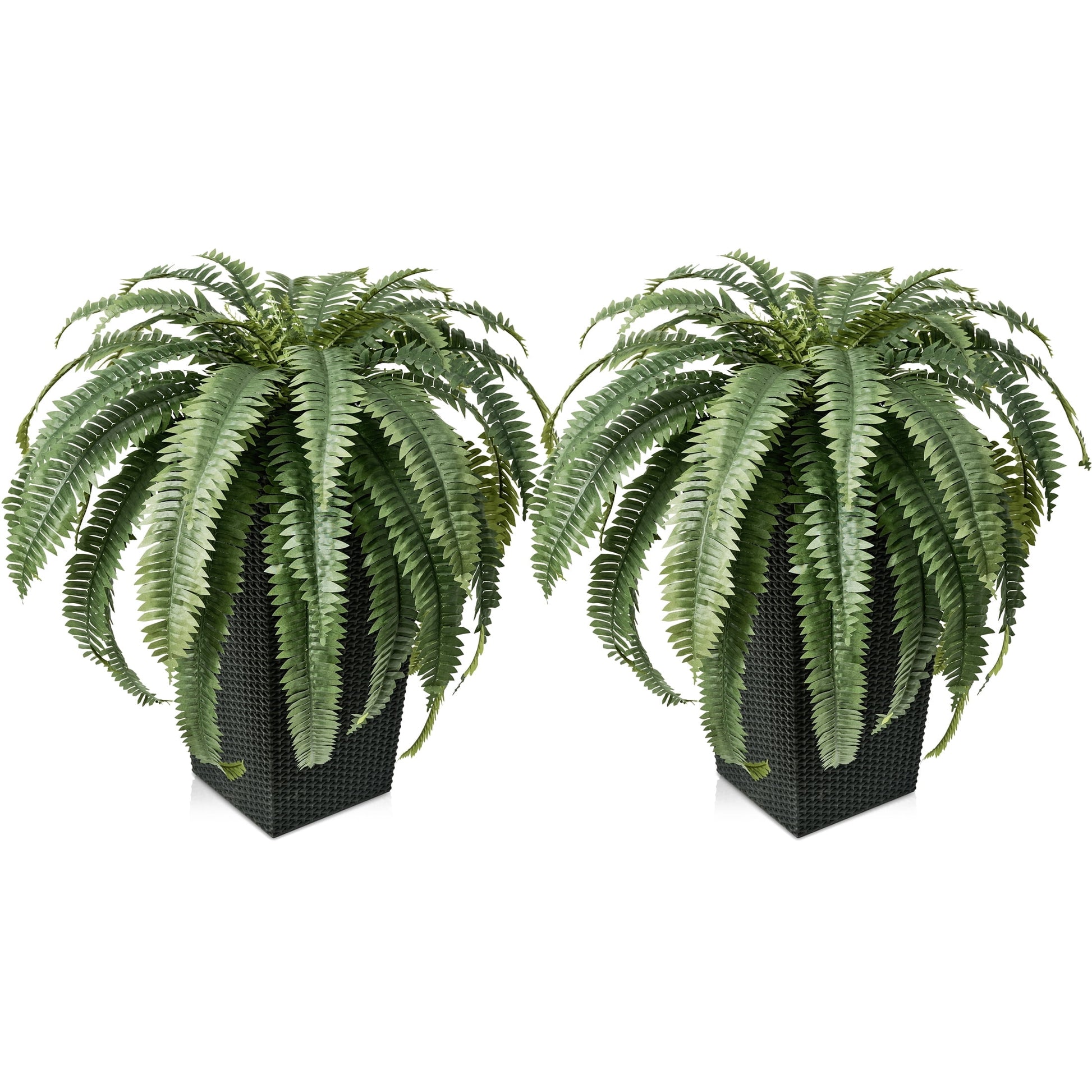 DR.Planzen 2 Pack Artificial Boston Fern Bush Plant with Black Tapered Planter - UV Resistant Faux Ferns with 39 Leaves