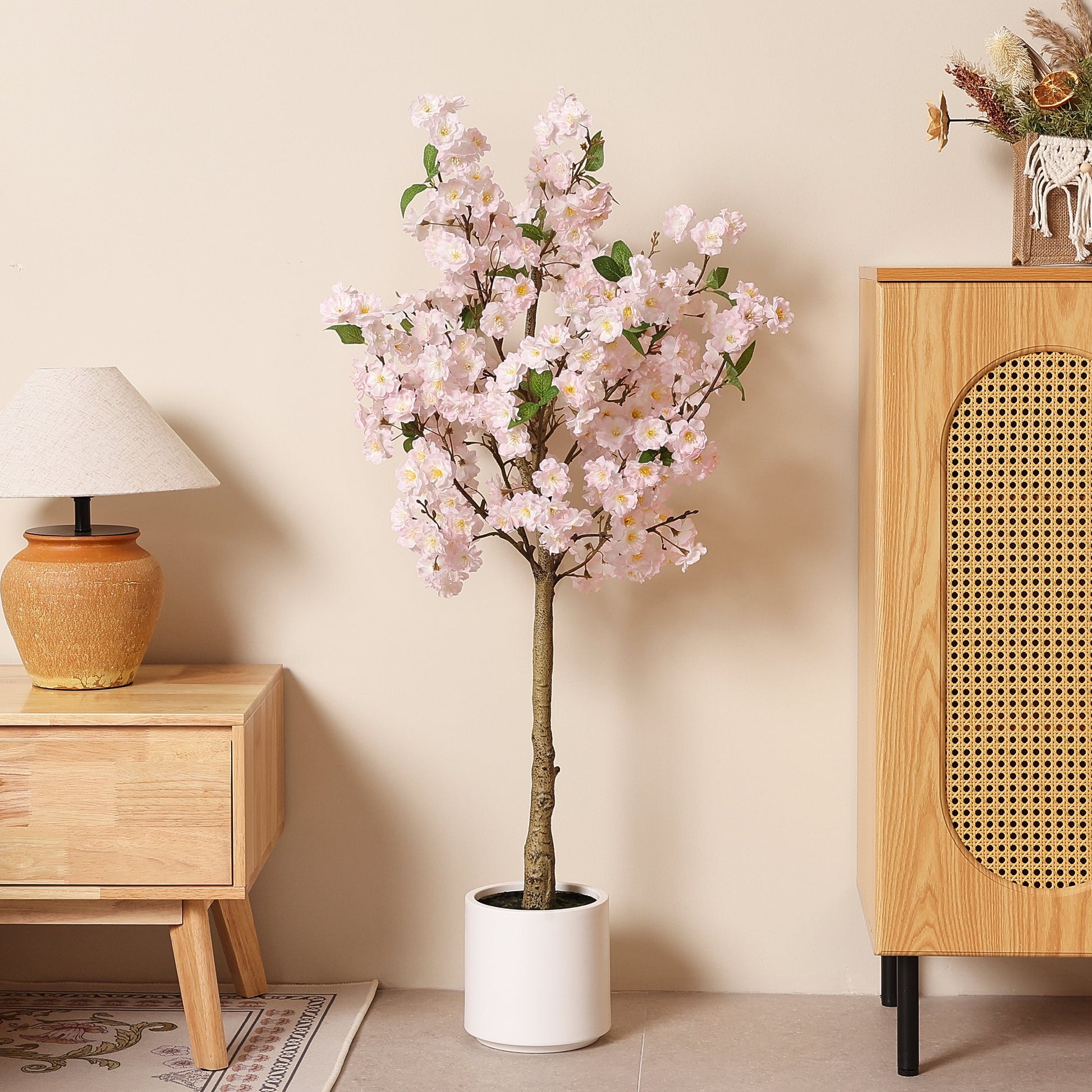 Bring the enchanting and timeless beauty of spring into your space all year round with the DR.Planzen 4.5ft Artificial Cherry Blossom Tree. This exquisite faux tree captures the delicate elegance of a cherry blossom in full bloom, featuring lifelike pink flowers and realistic branches. Perfectly potted in a modern white planter, it creates a stunning focal point that adds a touch of serene, romantic charm to any setting. Ideal for those who love the look of fresh flowers without the maintenance, it's the ultimate solution for enhancing your home, office, or commercial d¨¦cor.