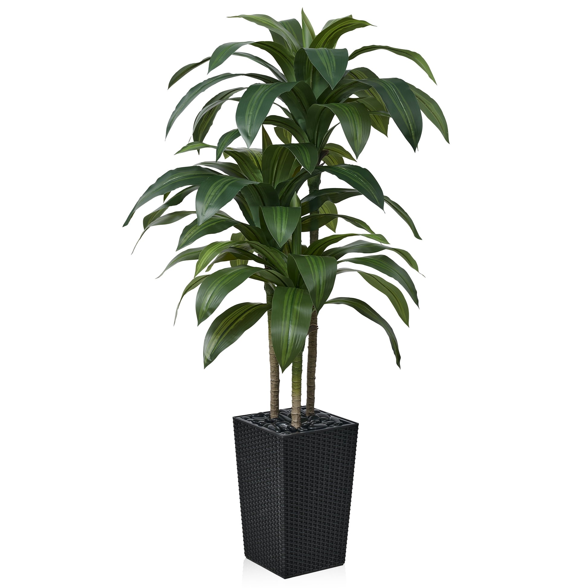 DR.Planzen Artificial Dracaena Tree 5ft - UV Protected Faux Dracaena Plant with 57 Green Leaves, Fake Tree for Indoor & Outdoor Use, Sturdy Tall Black Planter with River Stones