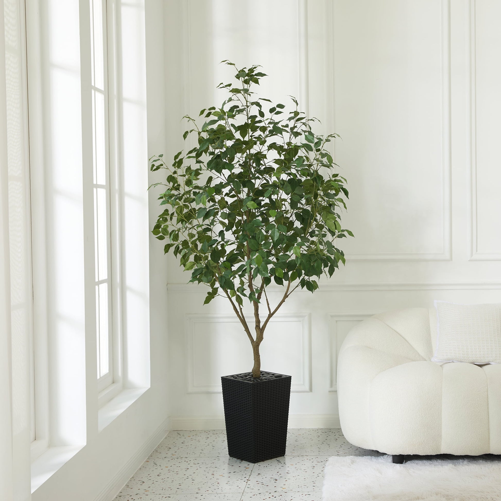 Like a timeless, ever-green ficus tree, this artificial ficus tree brings the essence of nature into your home or garden, whether indoors or outdoors. Its UV protected design ensures vibrant colors that stand strong under the sun, making it perfect for outdoor decor without fading. Each tree comes with a bag of pebbles to cover the base, adding to its natural look, as if it were plucked straight from nature. The sturdy and beautiful base means no need to waste time or money searching for additional support¡ªjust place it and enjoy the beauty it brings.