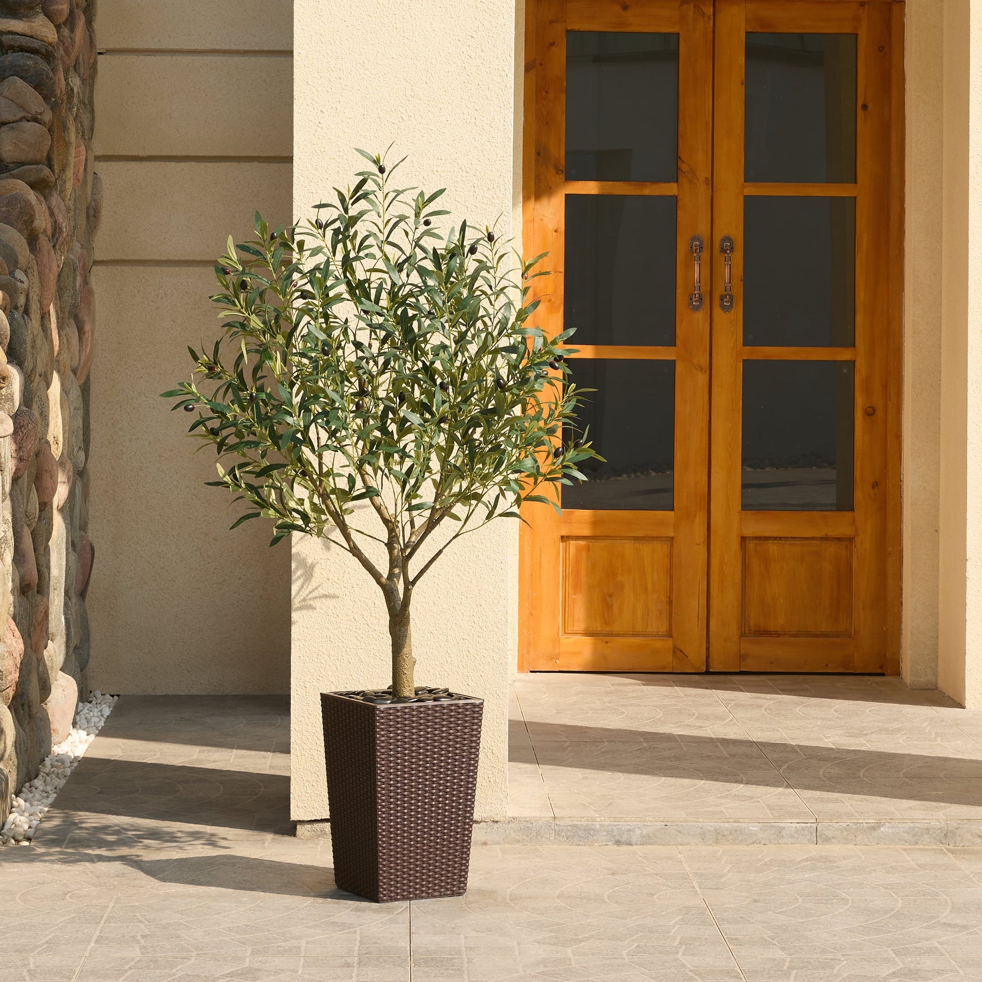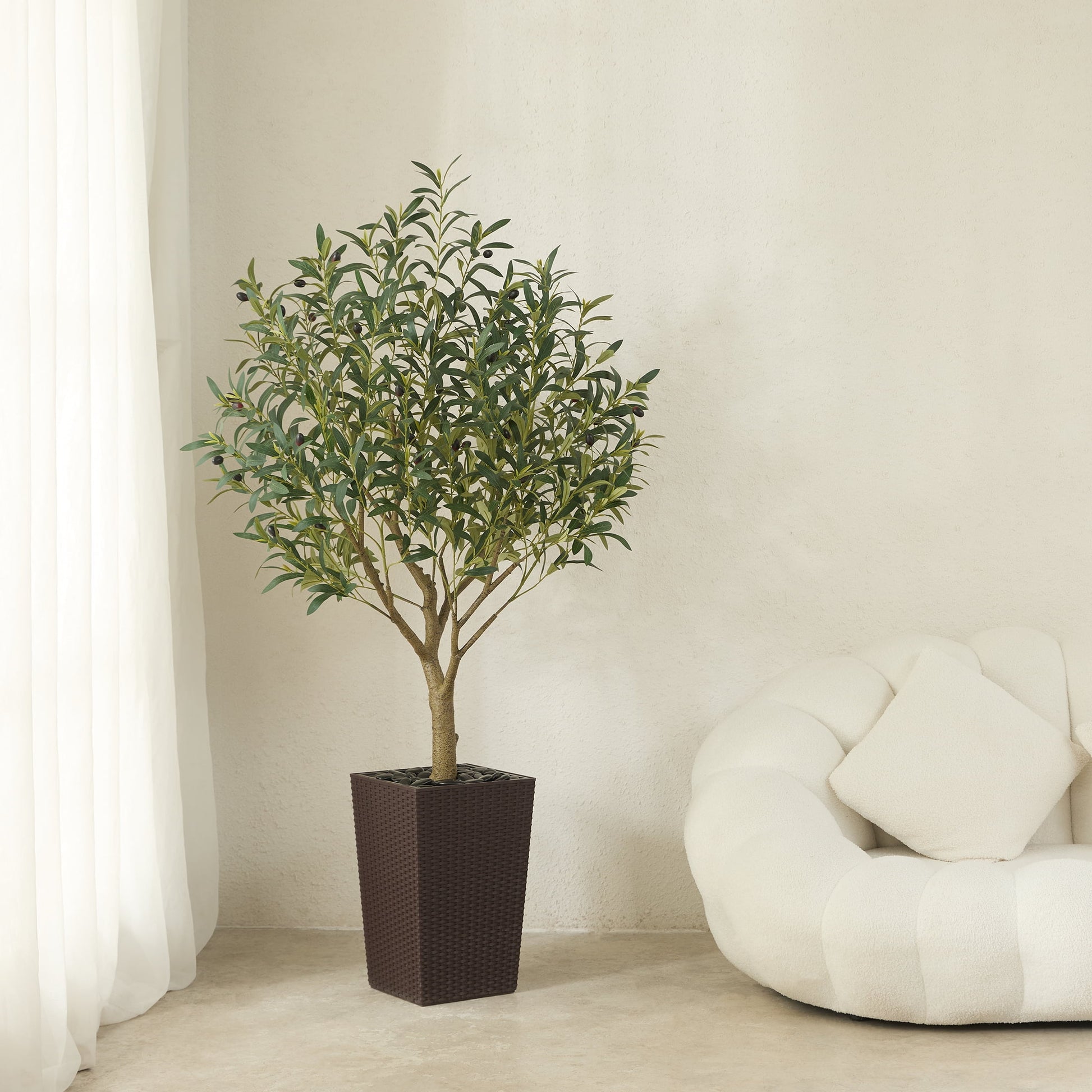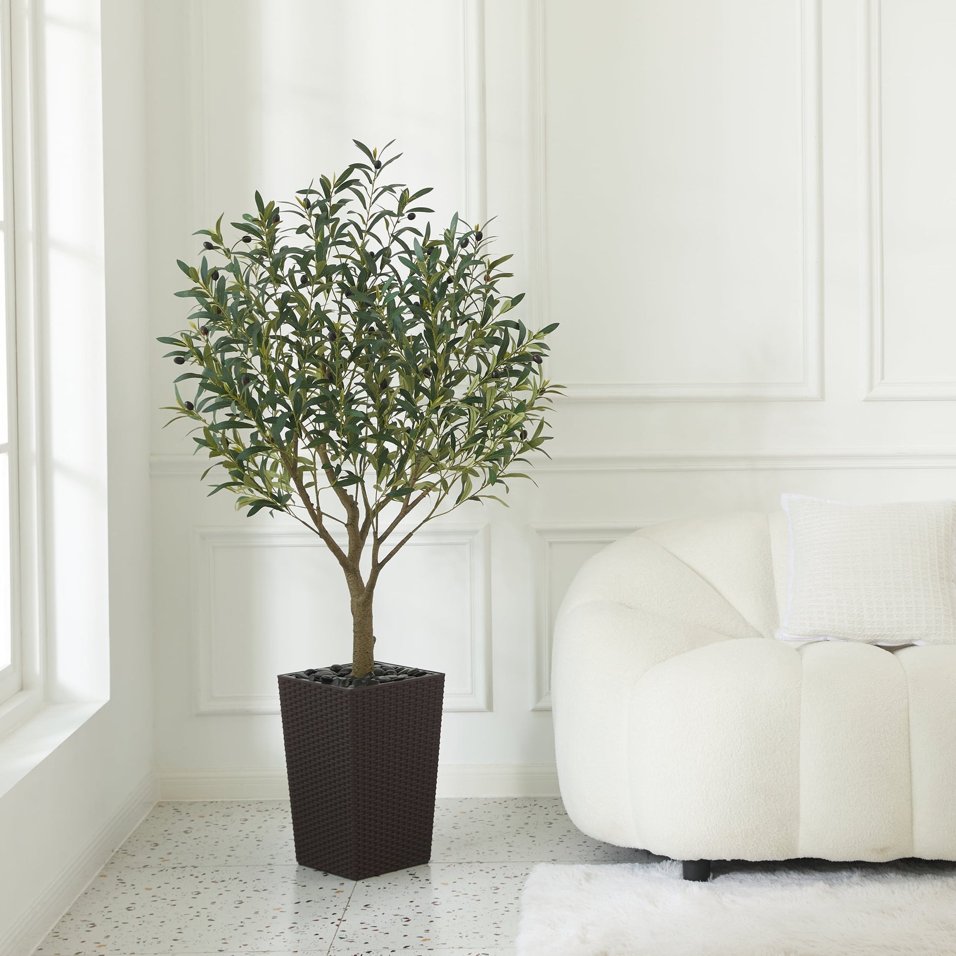 Imagine a lush olive tree, gracefully gracing your patio or living room, bringing the beauty of the Mediterranean into your home. Our faux olive tree stands tall at 5 feet, offering a stunning, UV-protected artificial tree that thrives both indoors and outdoors. The tree¡¯s multi-branch trunk creates a fuller, more realistic appearance, while the large, elegant base saves you time and money¡ªno need to search for a separate stand. For added realism, we include a bag of pebbles, allowing you to naturally cover the base. Perfect for those who want to bring the charm of an olive tree without the hassle of maintenance!