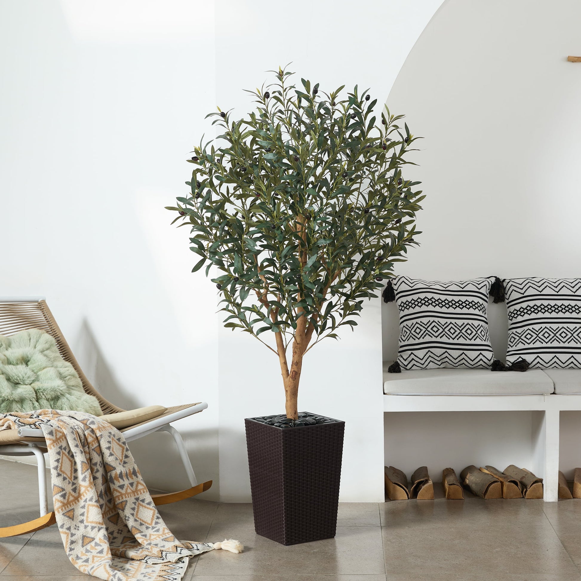 DR.Planzen UV Resistant 5ft Artificial Olive Tree with Natural Wood Branches and Realistic Silk Leaves,Faux Olive Tree for Indoor and Outdoor Decor - Brown Large Planter with Pebbles