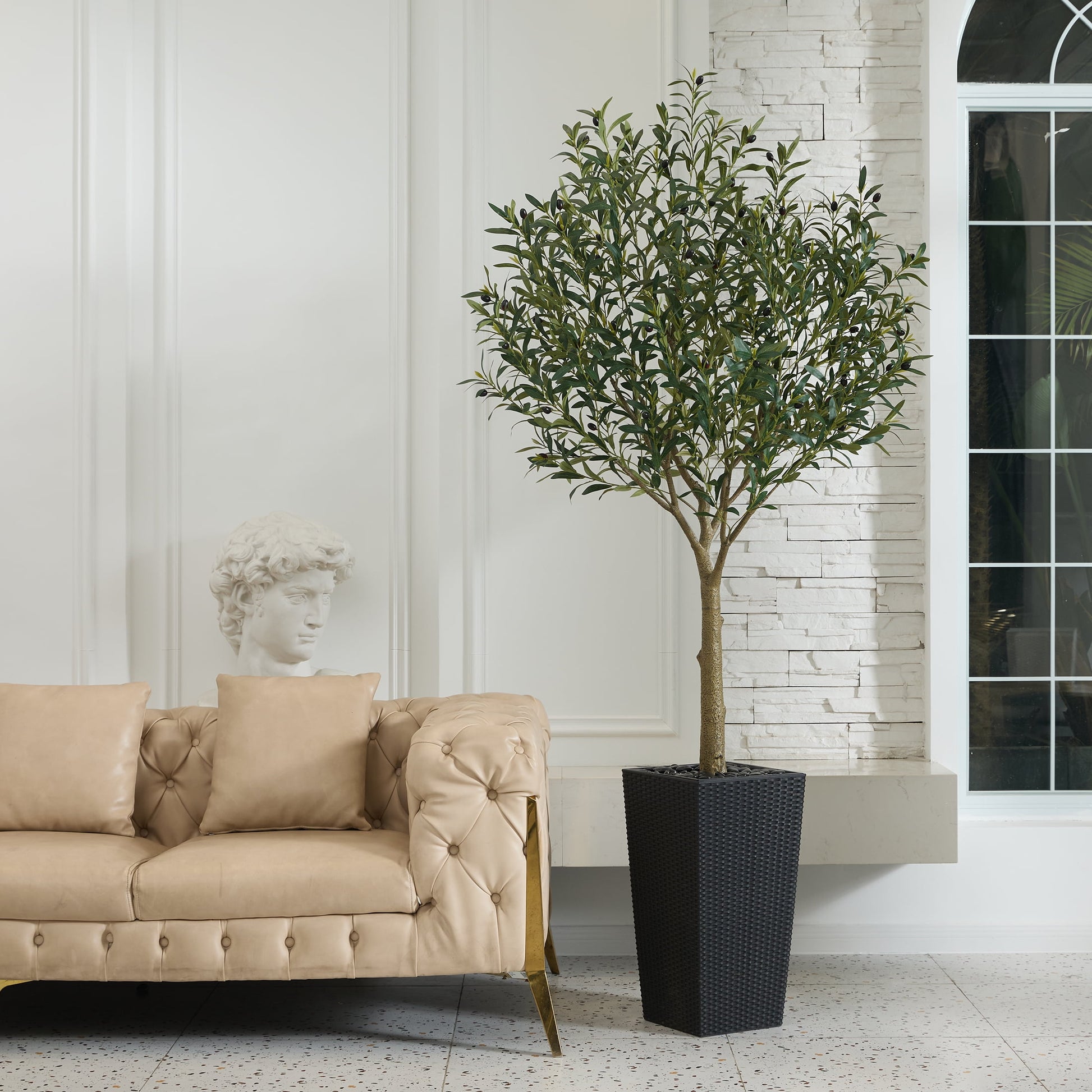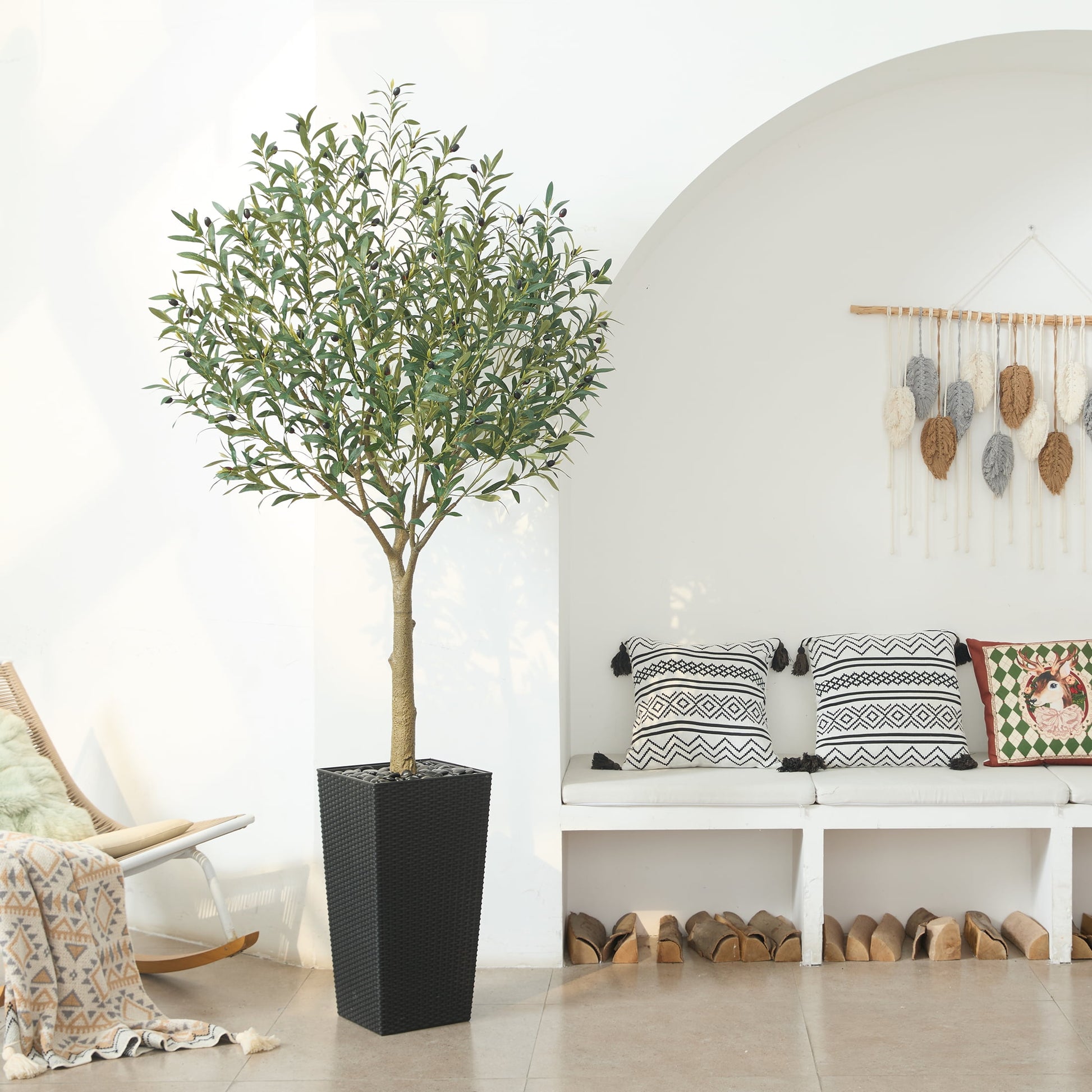 Imagine a lush olive tree, gracefully gracing your patio or living room, bringing the beauty of the Mediterranean into your home. Our faux olive tree stands tall at 7 feet, offering a stunning, UV-protected artificial tree that thrives both indoors and outdoors. The tree¡¯s multi-branch trunk creates a fuller, more realistic appearance, while the large, elegant base saves you time and money¡ªno need to search for a separate stand. For added realism, we include a bag of pebbles, allowing you to naturally cover the base. Perfect for those who want to bring the charm of an olive tree without the hassle of maintenance!