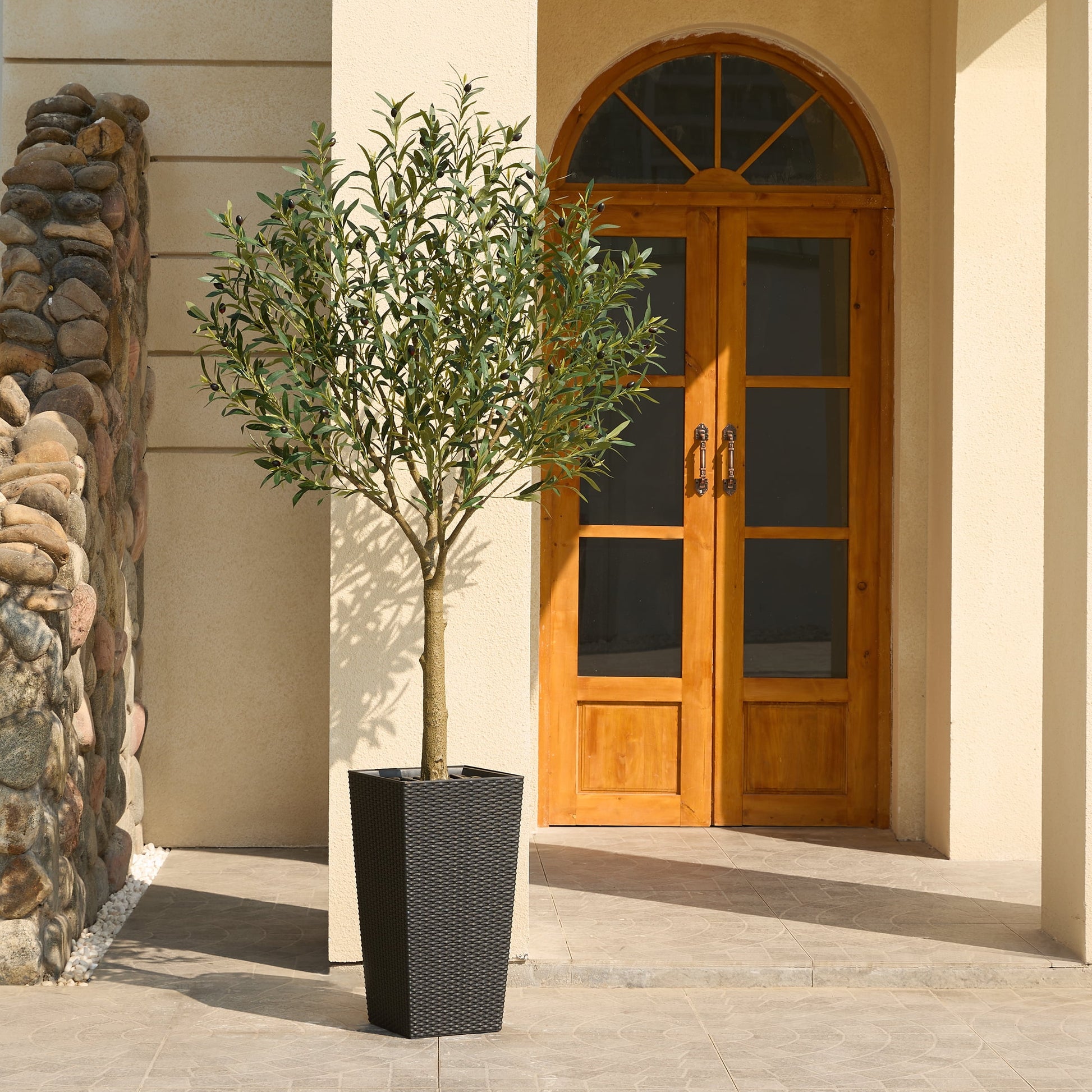 DR.Planzen UV Resistant 7ft Artificial Olive Tree in Black Large Planter with Pebbles¨C Faux Olive Tree for Indoor and Outdoor Decor, Lifelike Greenery for Home & Garden Decor